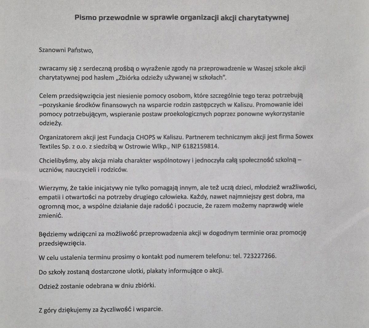 Serdecznie zapraszamy wszystkich uczniów do przyłączenia się do charytatywnej zbiórki odzieży używanej.