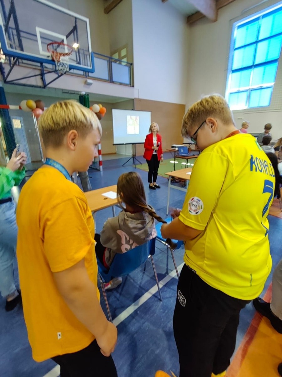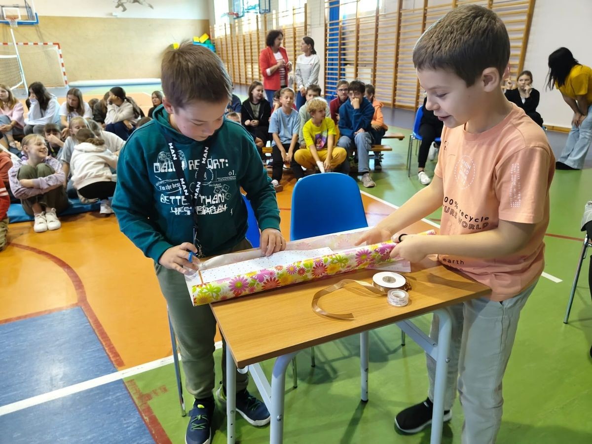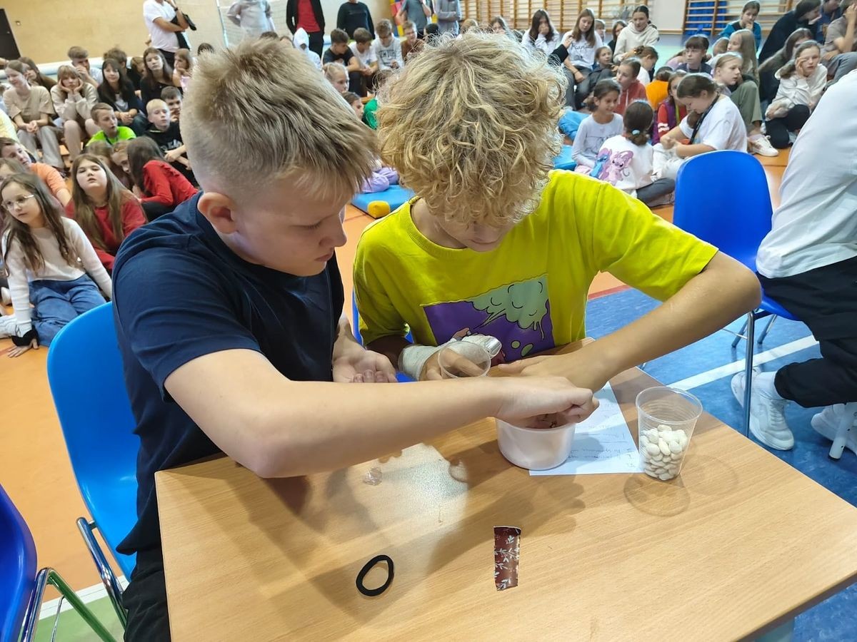 Do każdej konkurencji zapraszani byli inni uczestnicy. Jedni wyjaśniali, do czego służy zalotka, drudzy wykazywali się wiedzą kulinarną, podając nazwę kraju, z jakiego pochodzą zioła prowansalskie. Nie zabrakło również zmagań zręcznościowych, jak plecenie warkocza, pakowanie prezentu czy oddzielanie fasoli od grochu. Nad przebiegiem turnieju czuwało jury w składzie: pani dyrektor Beata Knop, pani pedagog Ewa Kwaśniewska oraz Michalina Ślezak – zastępca przewodniczącego SU. Zaszczytny tytuł „Najlepsi z Najlepszych” przypadł chłopcom z klasy VI. Gratulujemy!
