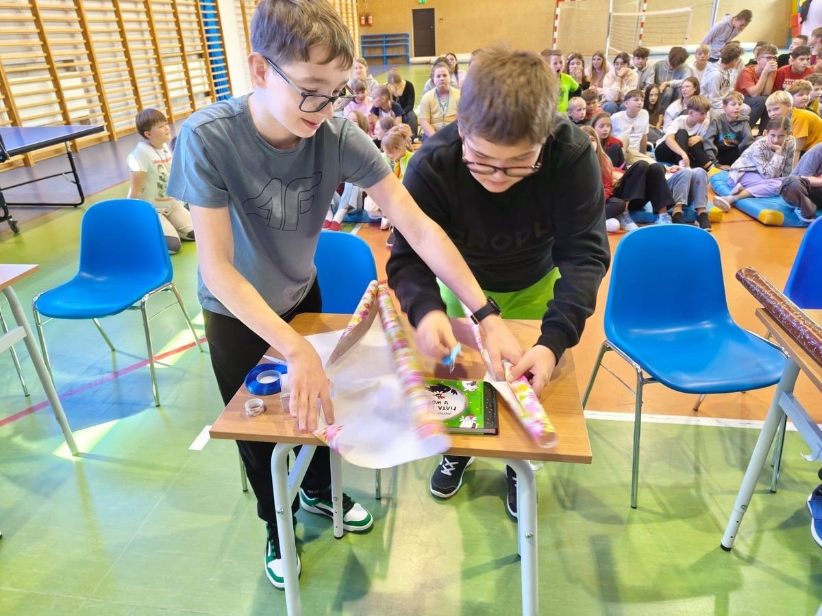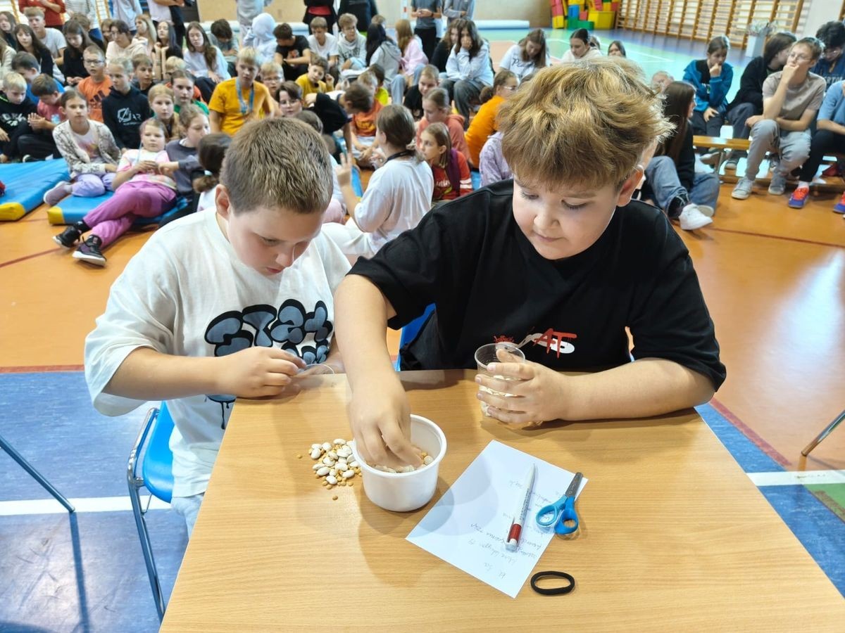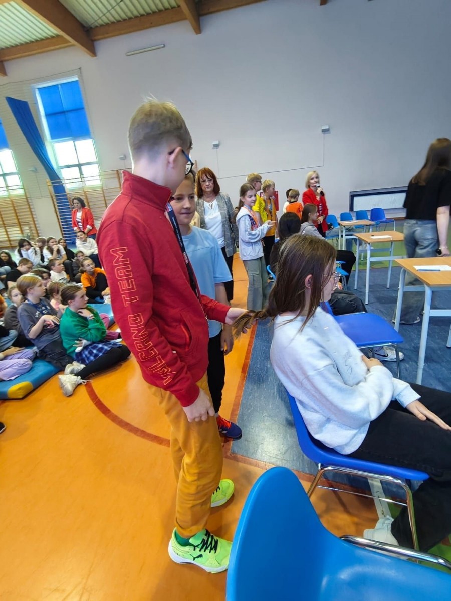Do każdej konkurencji zapraszani byli inni uczestnicy. Jedni wyjaśniali, do czego służy zalotka, drudzy wykazywali się wiedzą kulinarną, podając nazwę kraju, z jakiego pochodzą zioła prowansalskie. Nie zabrakło również zmagań zręcznościowych, jak plecenie warkocza, pakowanie prezentu czy oddzielanie fasoli od grochu. Nad przebiegiem turnieju czuwało jury w składzie: pani dyrektor Beata Knop, pani pedagog Ewa Kwaśniewska oraz Michalina Ślezak – zastępca przewodniczącego SU. Zaszczytny tytuł „Najlepsi z Najlepszych” przypadł chłopcom z klasy VI. Gratulujemy!