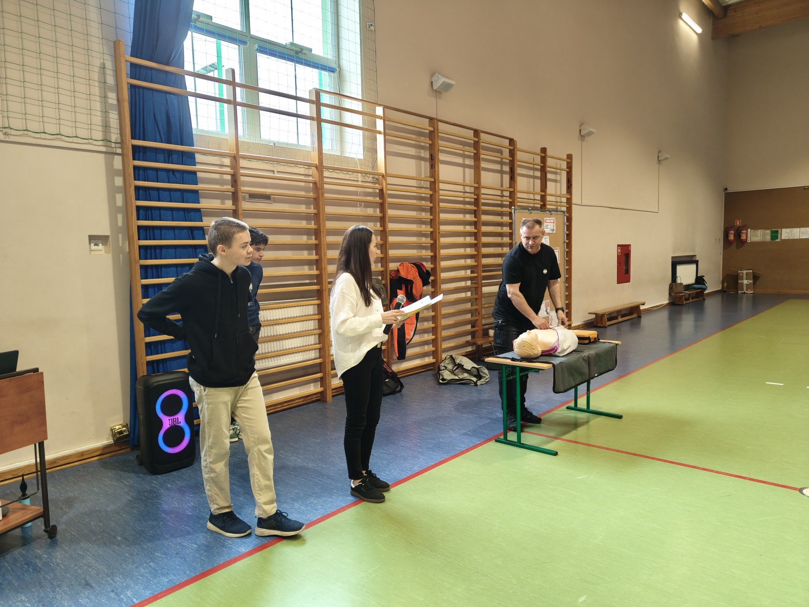 W wydarzeniu uczestniczyło dwóch ratowników medycznych, którzy dzielili się swoją wiedzą i doświadczeniem, a także wolontariusze – uczniowie naszej szkoły, którzy wspierali przebieg zajęć.