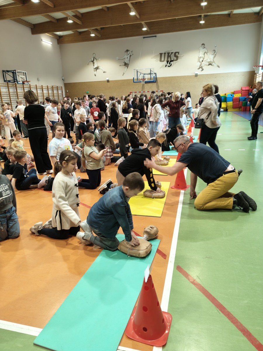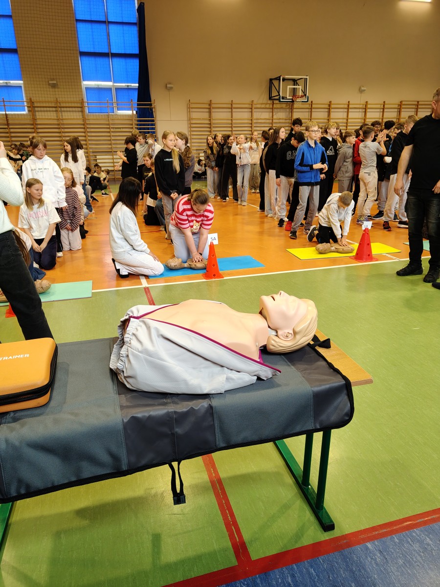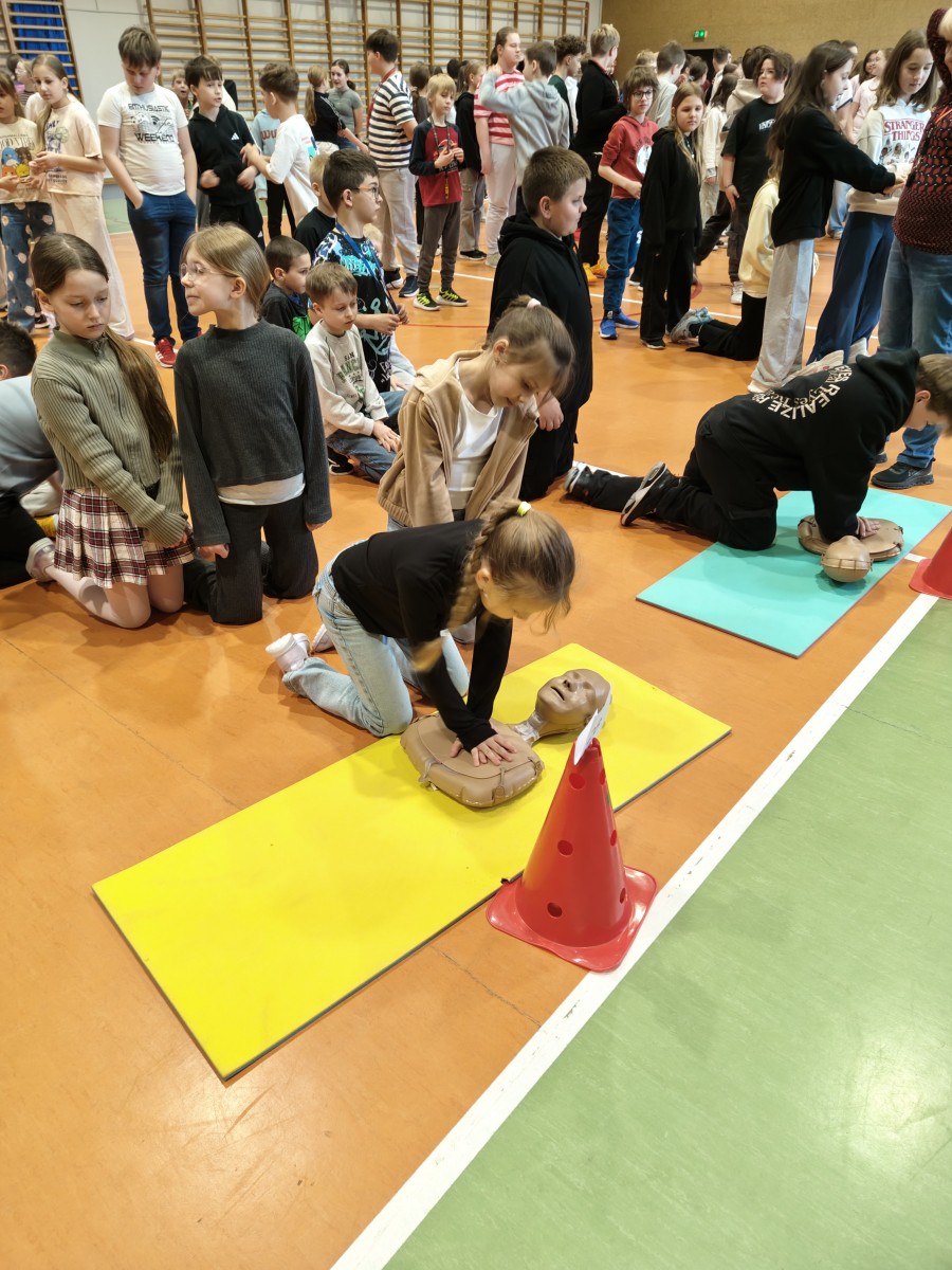 W poniedziałek, 13.04, w naszej szkole odbył się Dzień Zdrowia, podczas którego uczniowie mieli okazję wziąć udział w zajęciach z pierwszej pomocy. Każda klasa mogła przećwiczyć resuscytację krążeniowo-oddechową na fantomach oraz zdobyć praktyczne umiejętności ratowania życia.