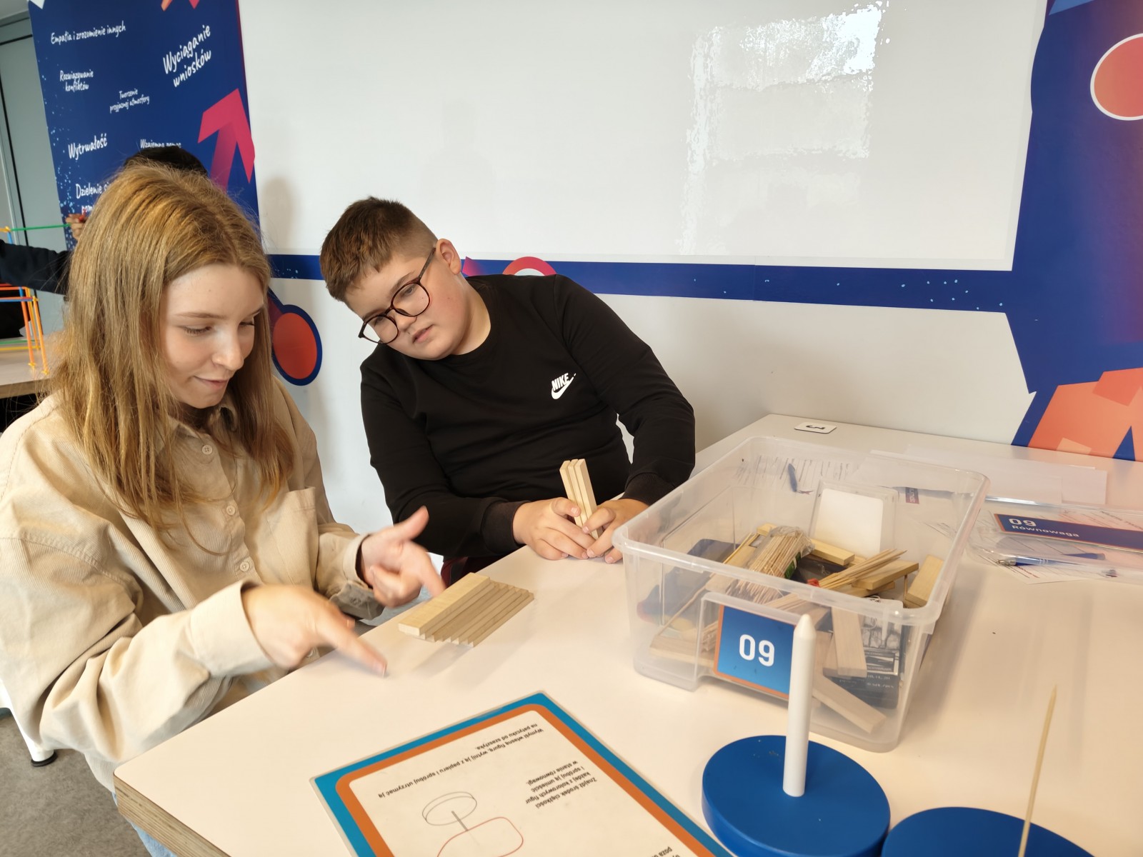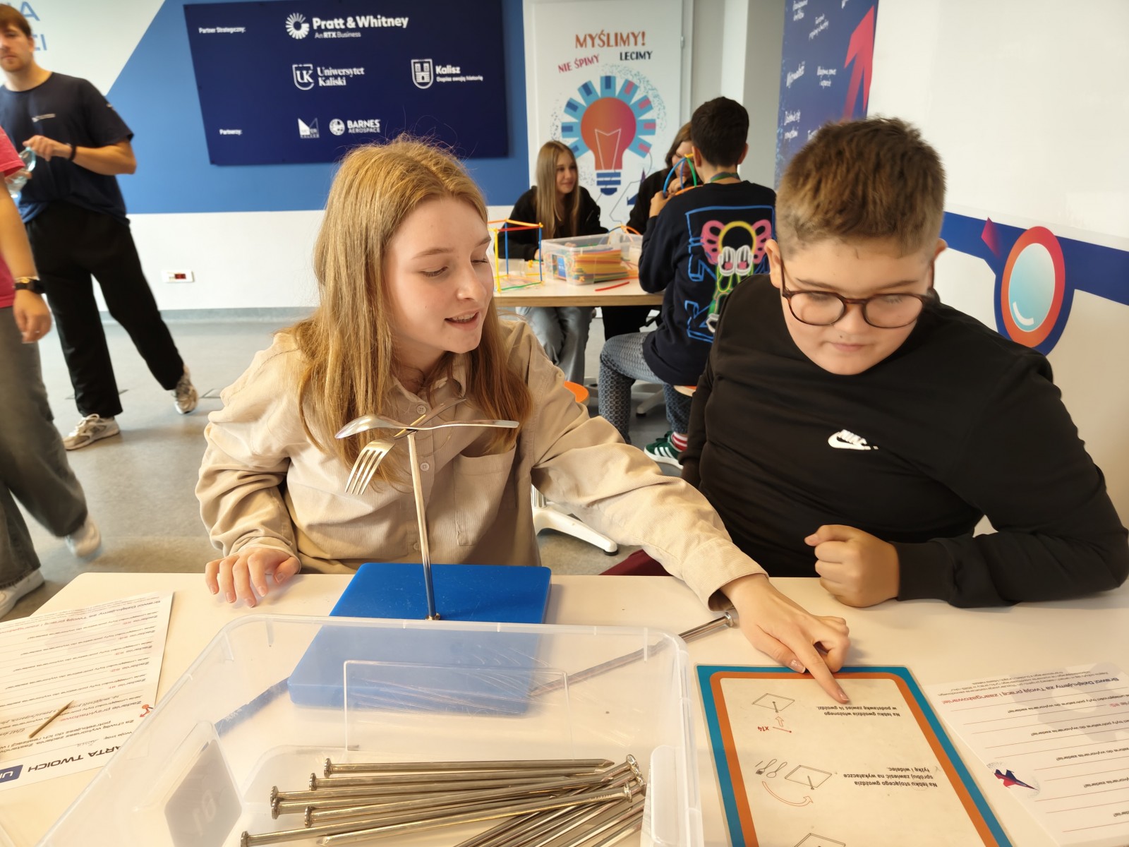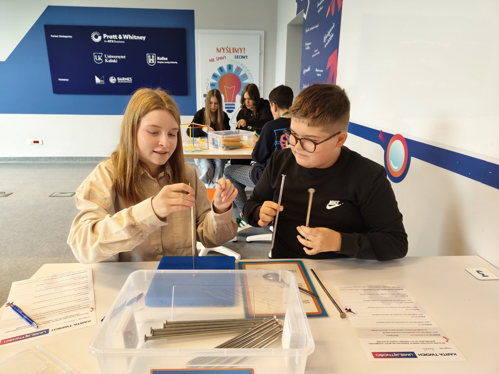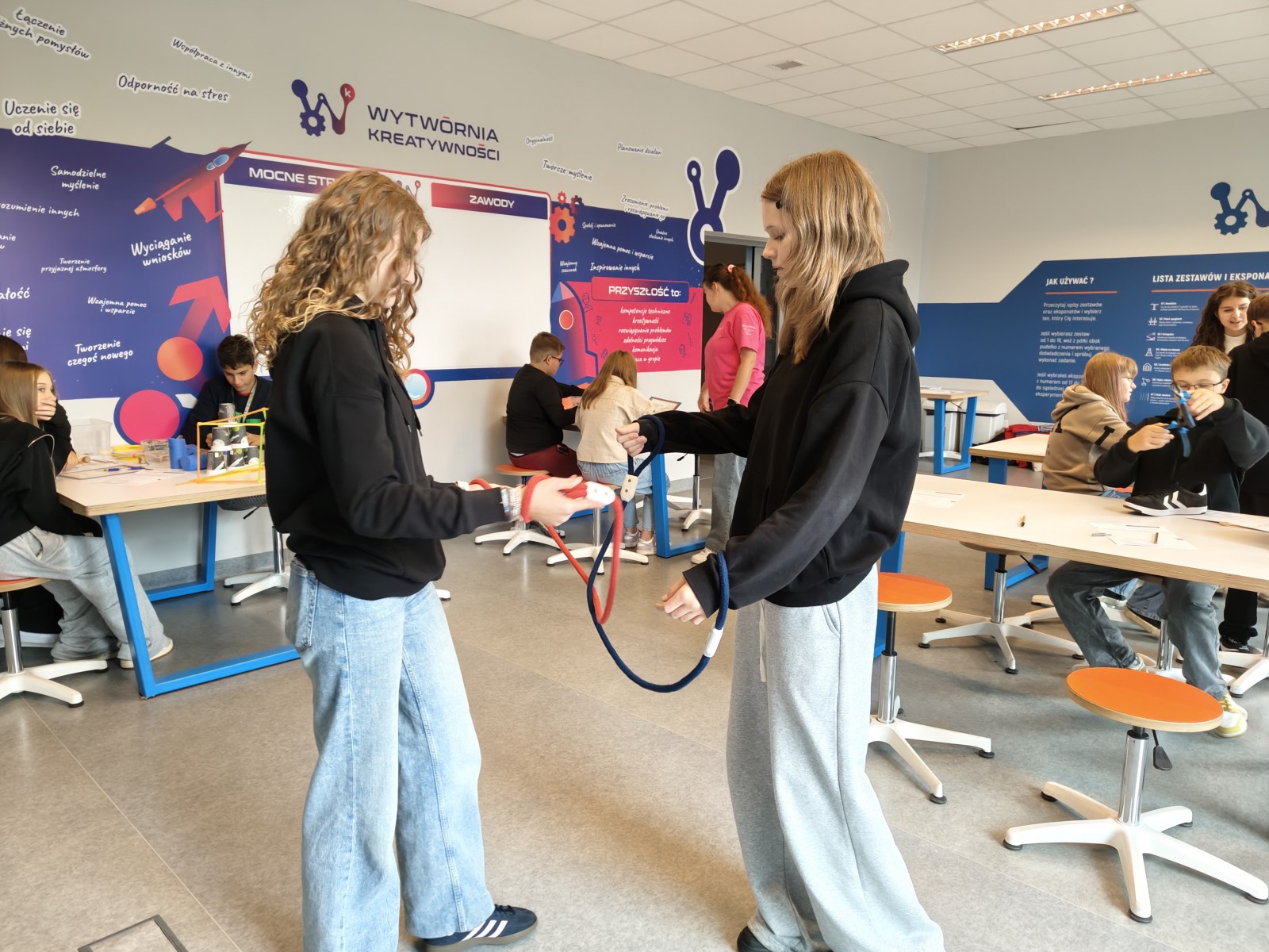 6 października klasa 7a wzięła udział w warsztatach w Wytwórni Kreatywności na terenie Uniwersytetu Kaliskiego na Wydziale Politechniki. Uczniowie mieli rozwiązać zadania i przeprowadzić techniczne eksperymenty współpracując w grupach, gdzie kształtowali kompetencje miękkie, takie jak: współpraca z innymi, wytrwałość, łączenie różnych pomysłów, uważne słuchanie, czy tworzenie przyjaznej atmosfery. Podczas podsumowania uczestnicy warsztatów mieli okazję zastanowić się, jak wspomniane kompetencje można wykorzystać w różnych zawodach. Na pewno wrócimy na kolejną edycję w przyszłym roku.