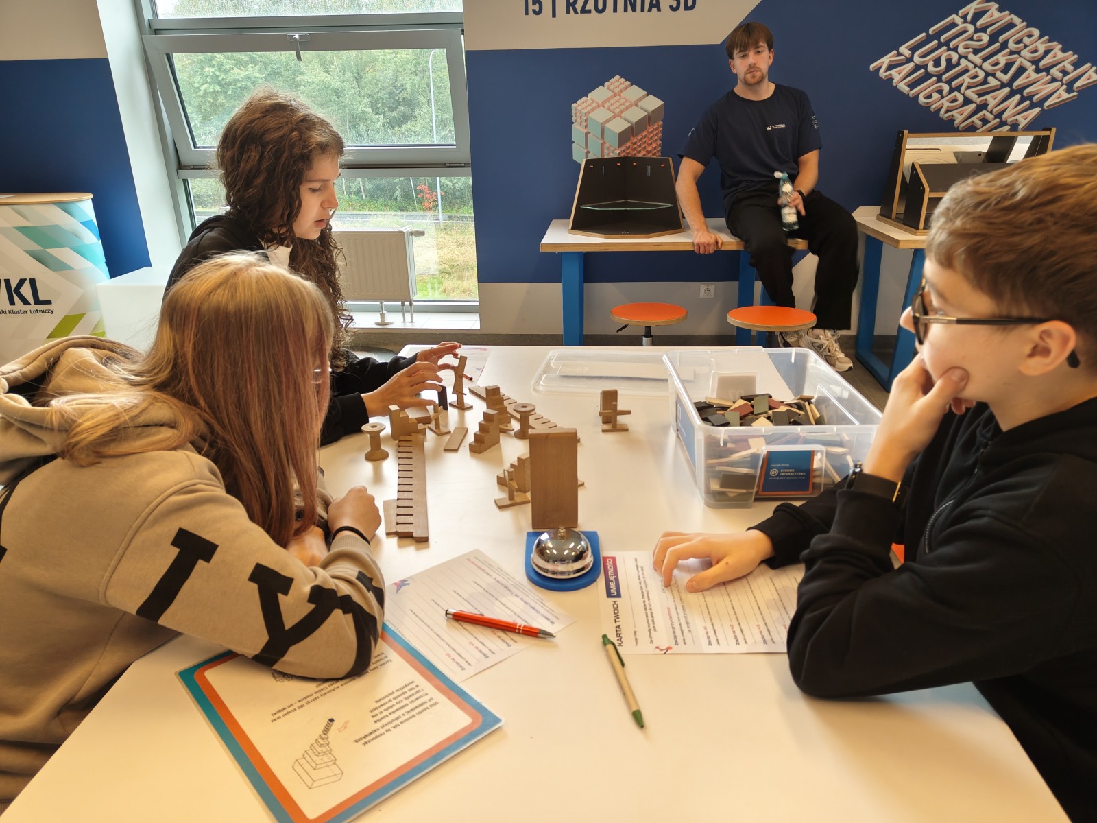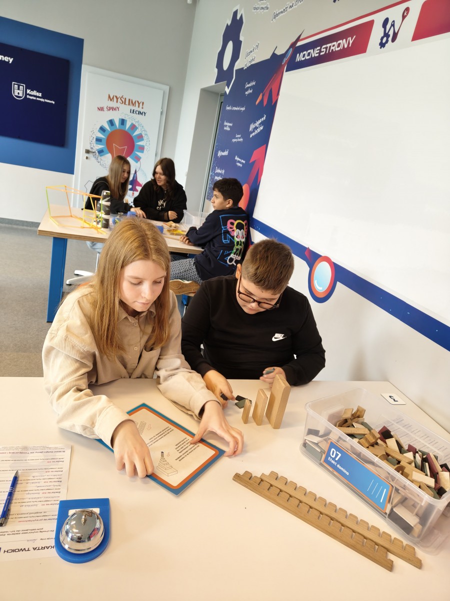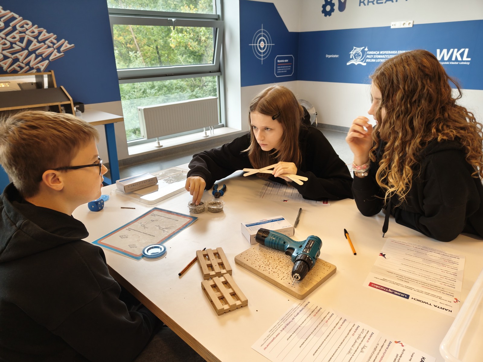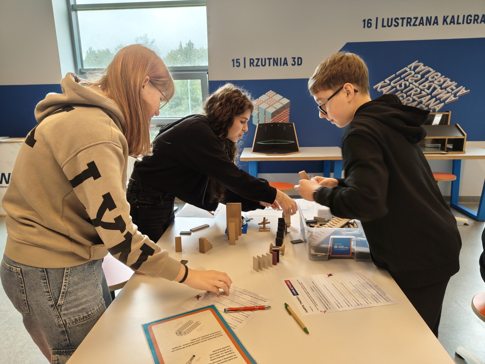 6 października klasa 7a wzięła udział w warsztatach w Wytwórni Kreatywności na terenie Uniwersytetu Kaliskiego na Wydziale Politechniki. Uczniowie mieli rozwiązać zadania i przeprowadzić techniczne eksperymenty współpracując w grupach, gdzie kształtowali kompetencje miękkie, takie jak: współpraca z innymi, wytrwałość, łączenie różnych pomysłów, uważne słuchanie, czy tworzenie przyjaznej atmosfery. Podczas podsumowania uczestnicy warsztatów mieli okazję zastanowić się, jak wspomniane kompetencje można wykorzystać w różnych zawodach. Na pewno wrócimy na kolejną edycję w przyszłym roku.
