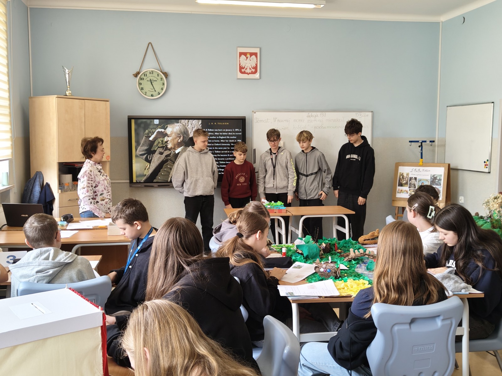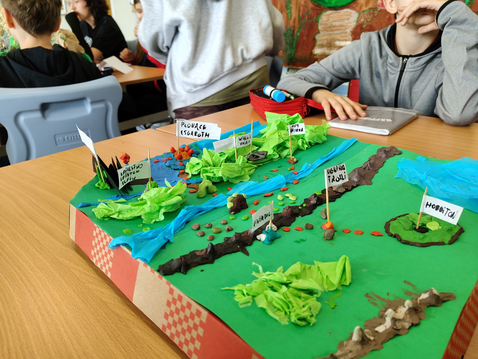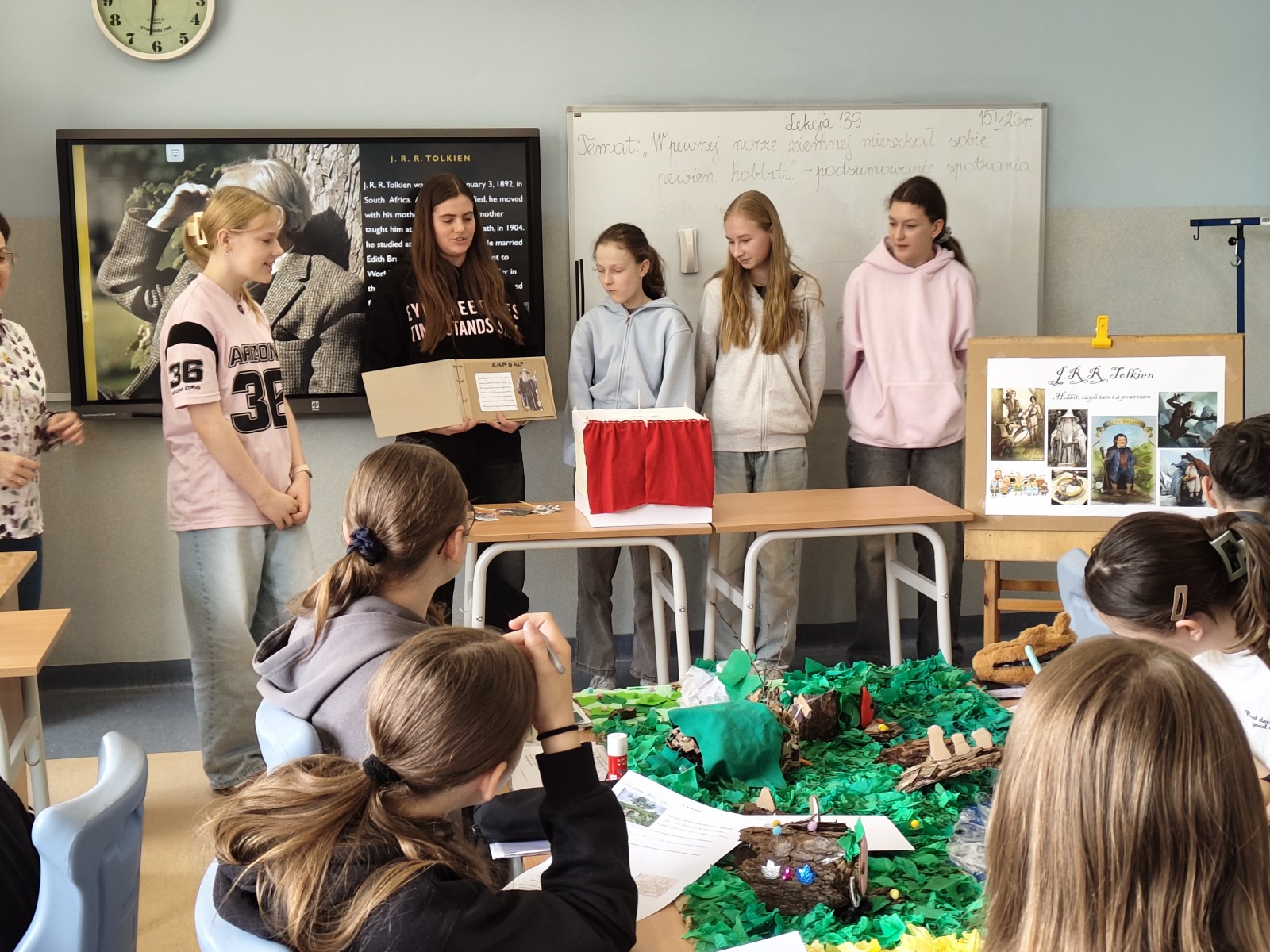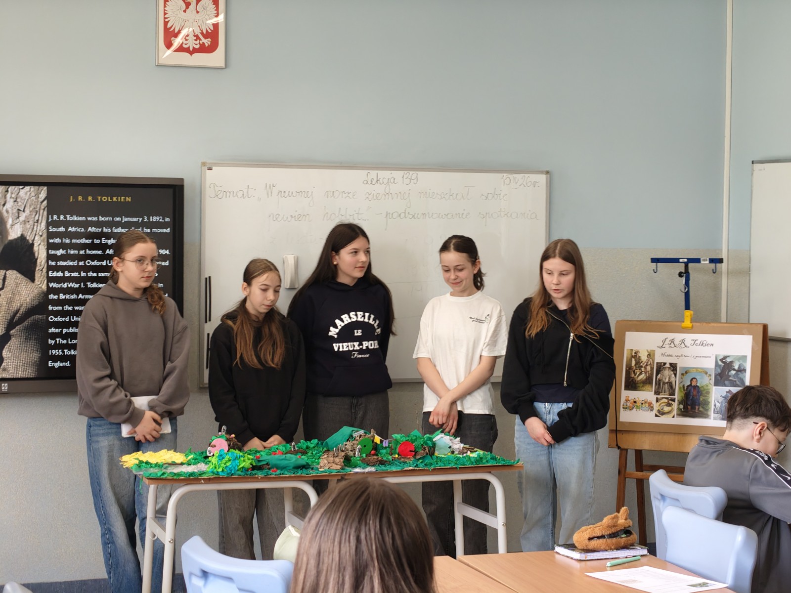 Uczniowie w grupach przygotowali projekty: norka Bilbo Bagginsa, makieta Hobbitonu, gra na podstawie lektury, makieta trasy wędrowców przez Śródziemie po Arcyklejnot, przedstawienie wybranych bohaterów z lektury "Hobbit, czyli tam i z powrotem".