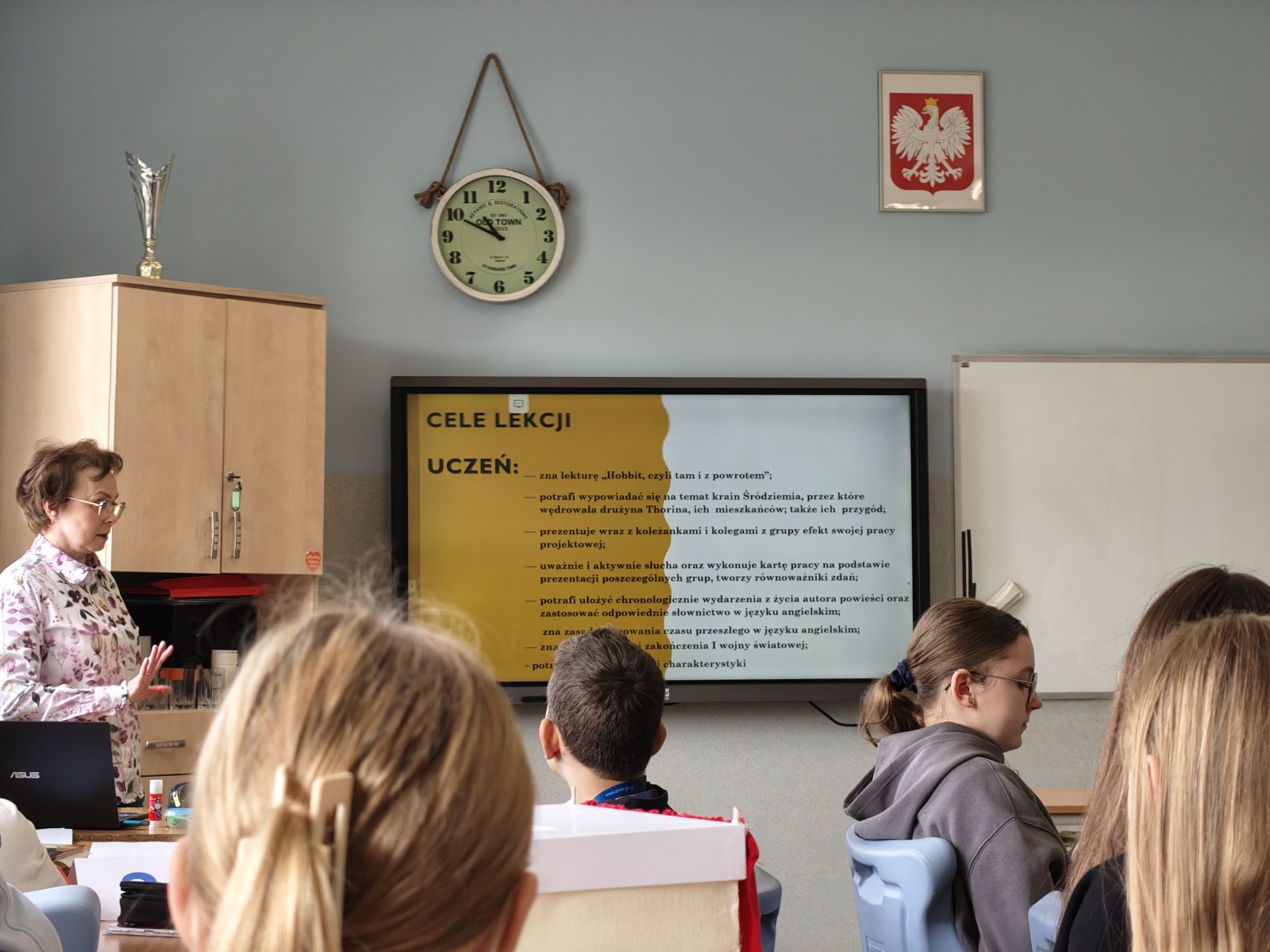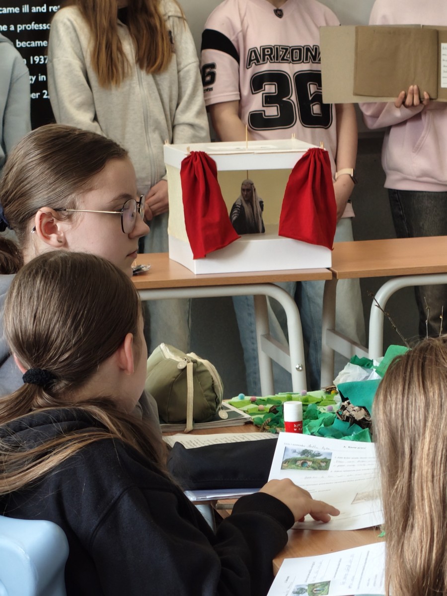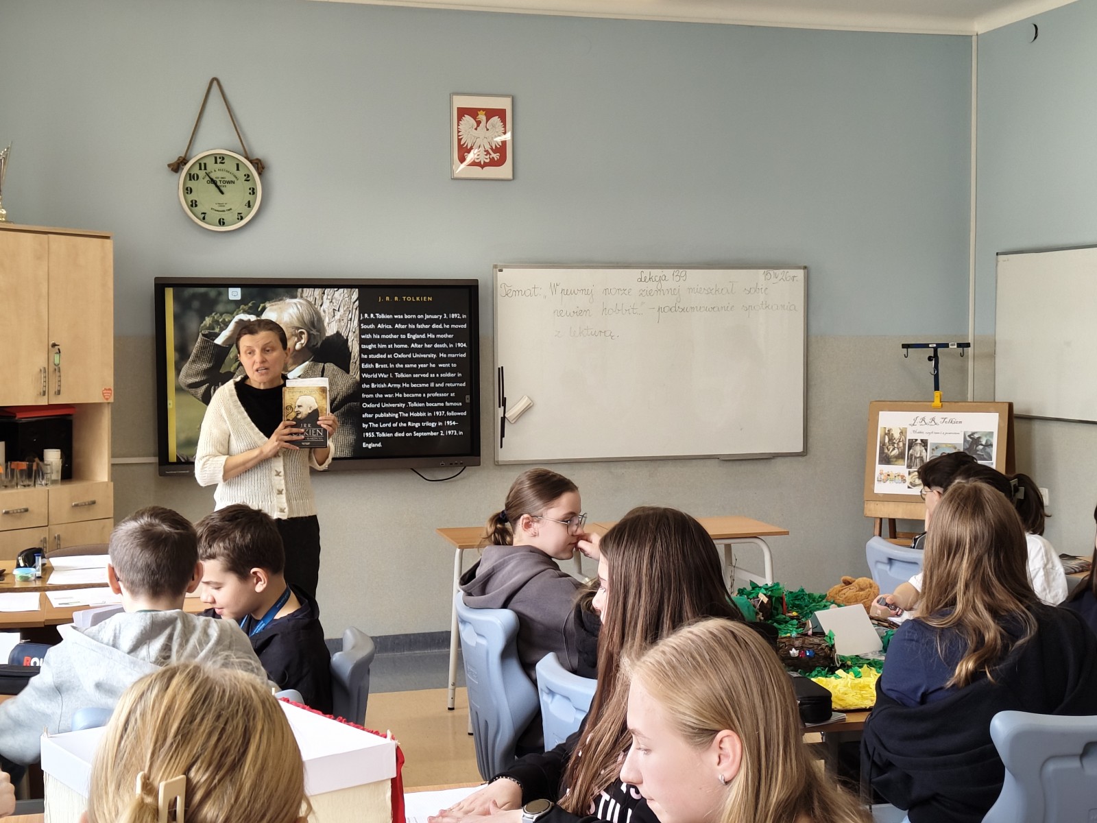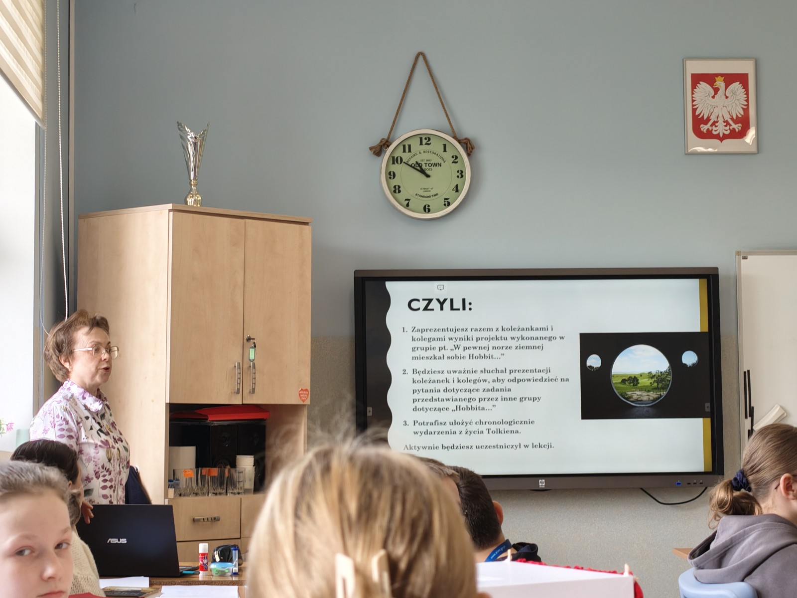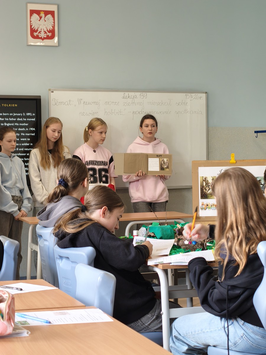 Uczniowie w grupach przygotowali projekty: norka Bilbo Bagginsa, makieta Hobbitonu, gra na podstawie lektury, makieta trasy wędrowców przez Śródziemie po Arcyklejnot, przedstawienie wybranych bohaterów z lektury "Hobbit, czyli tam i z powrotem".