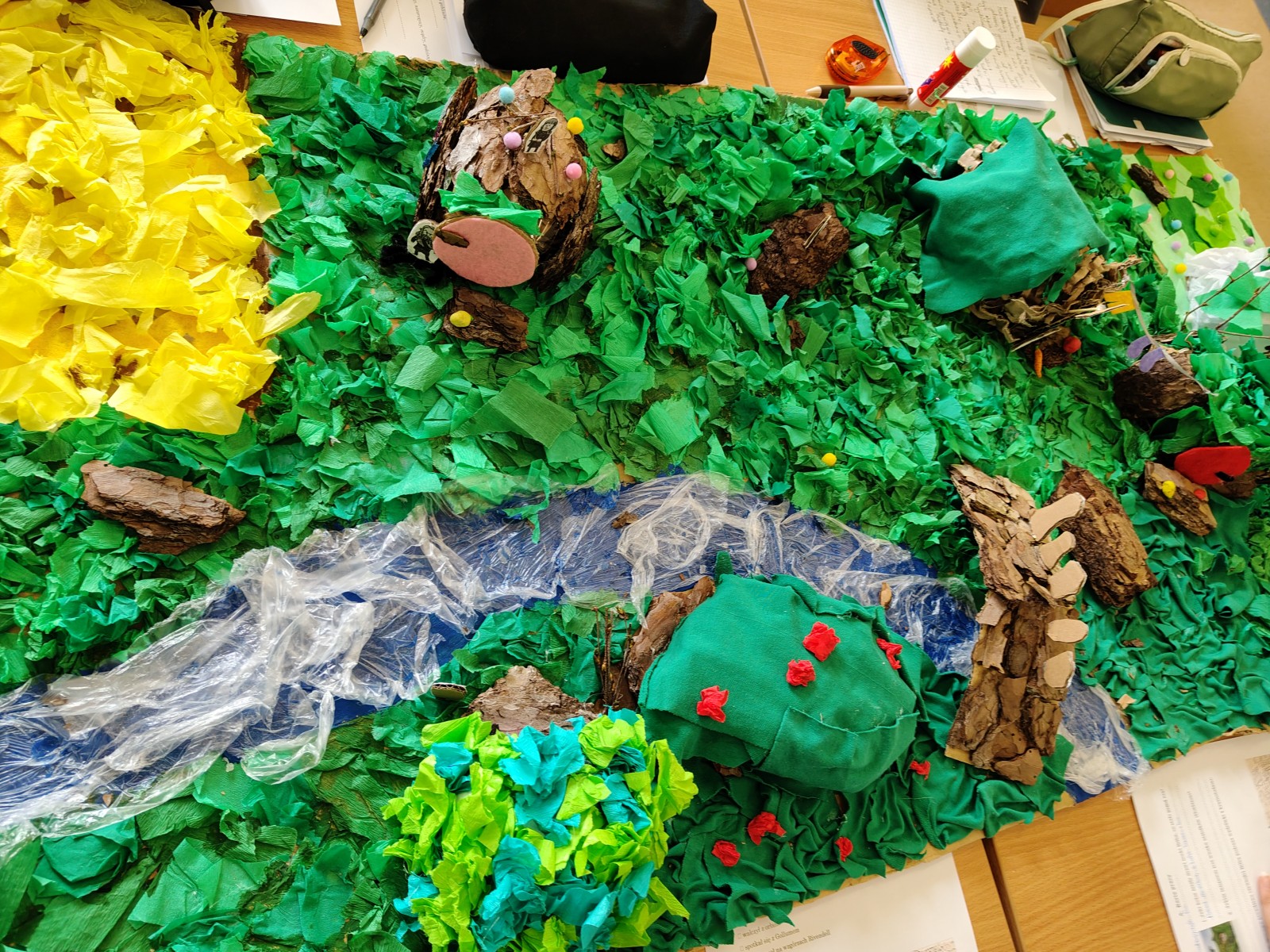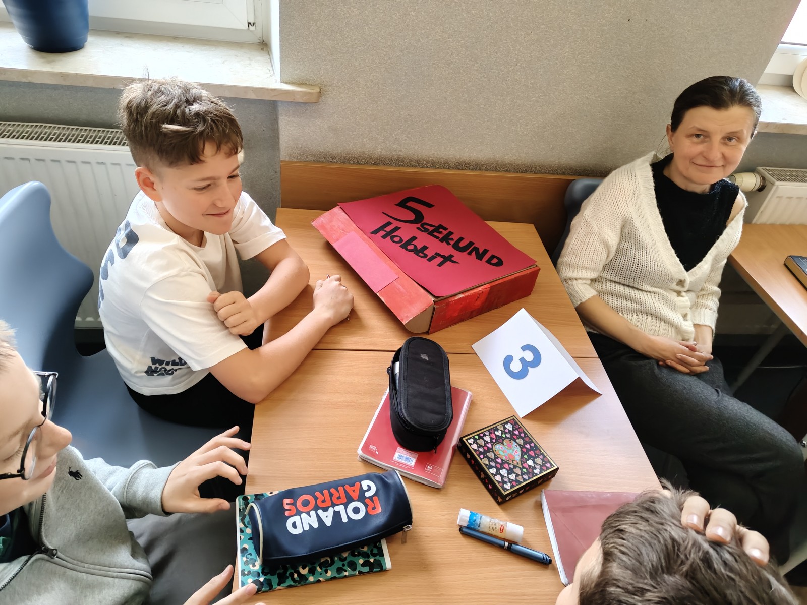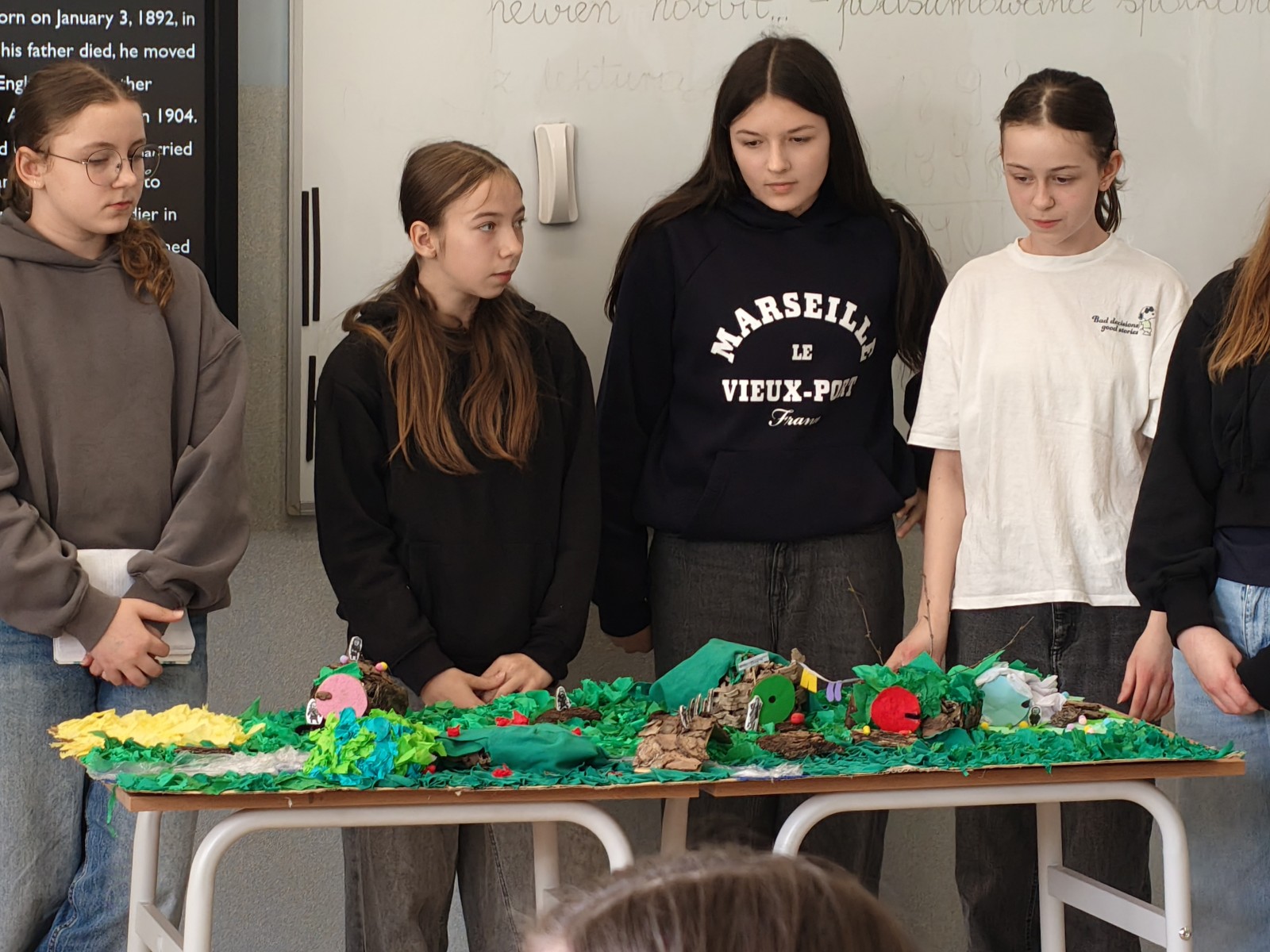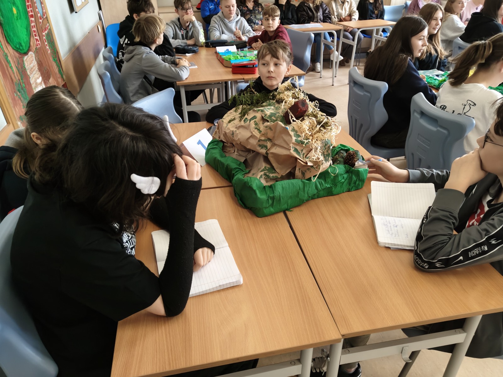 Uczniowie w grupach przygotowali projekty: norka Bilbo Bagginsa, makieta Hobbitonu, gra na podstawie lektury, makieta trasy wędrowców przez Śródziemie po Arcyklejnot, przedstawienie wybranych bohaterów z lektury "Hobbit, czyli tam i z powrotem".