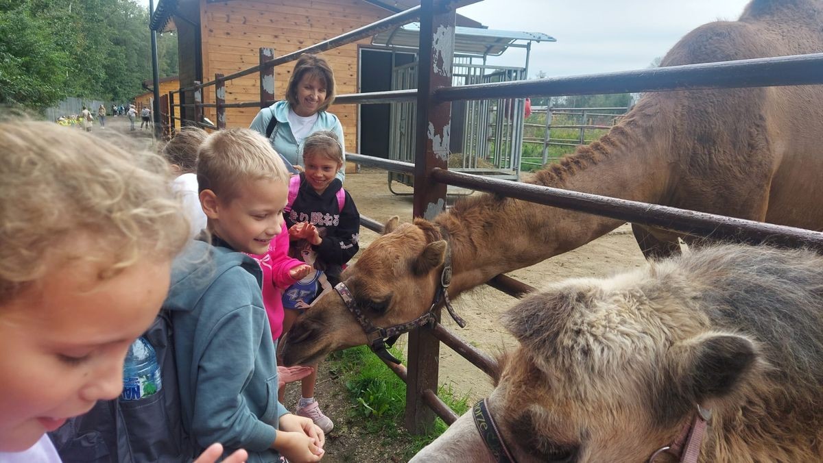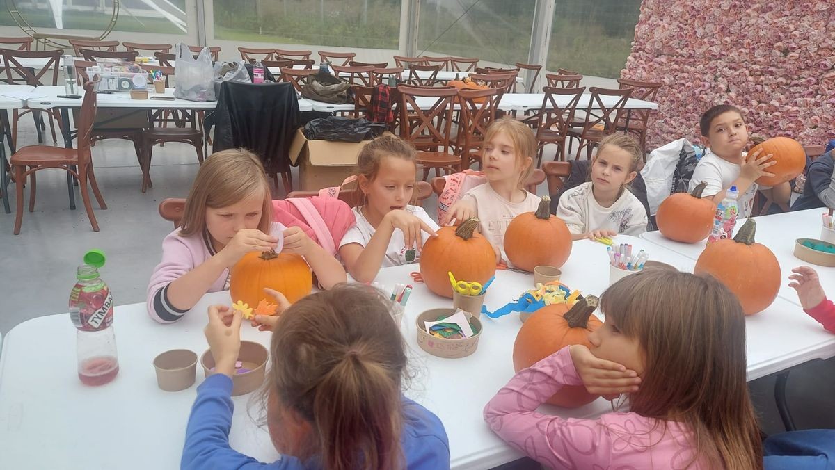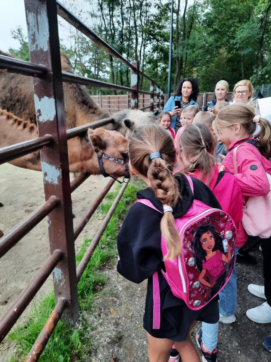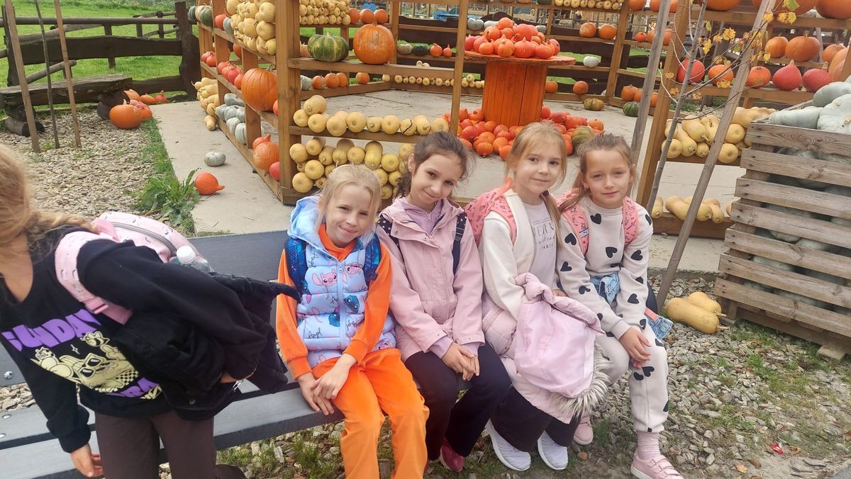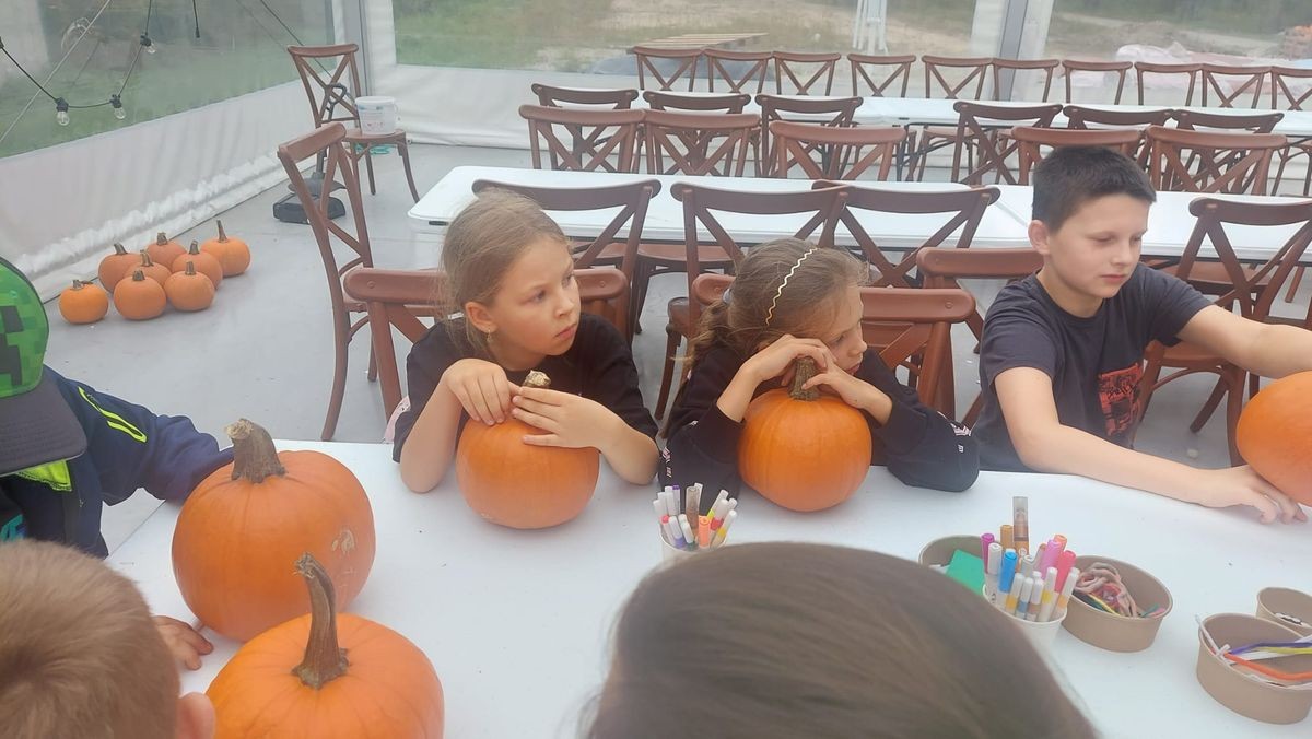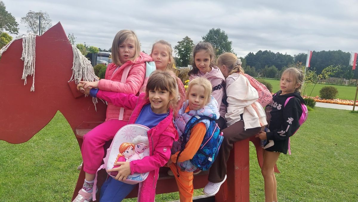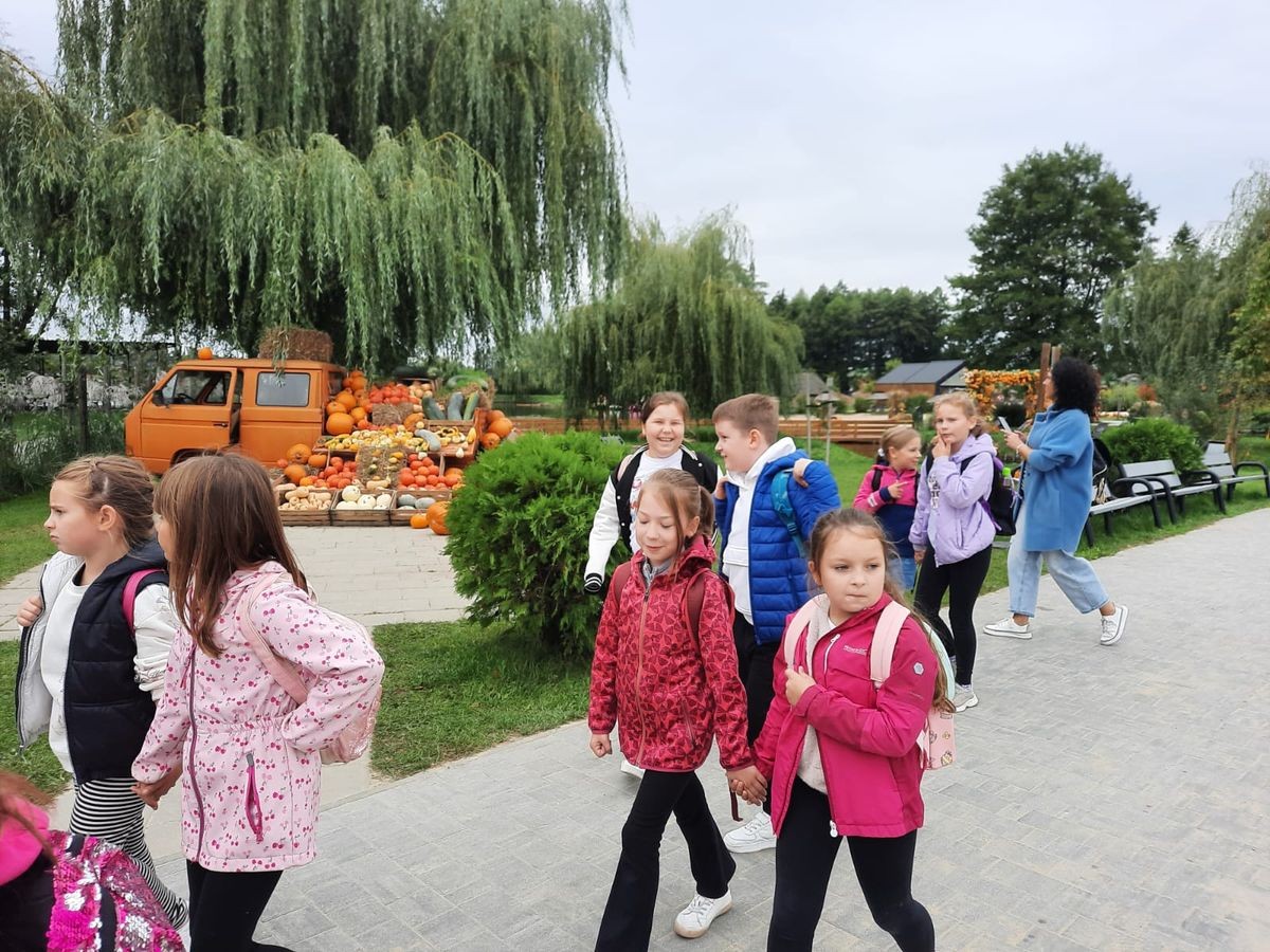Miejsce zachwycało pięknem kolorów i form, wśród których dominowały dynie. Dzieci bardzo miło spędziły czas na świeżym powietrzu, gdzie spotkały wiele zwierząt, takich jak: wielbłądy, kangury, osły, kozy wietnamskie, króliki, alpaki. Po spacerze z przewodnikiem i karmieniu zwierząt odbyły się warsztaty zdobienia dyni. Dzieci uruchomiły swoją wyobraźnię i stworzyły rozmaite formy. Na pękatych kształtach pomarańczowych kul malowały, naklejały i rzeźbiły.nDzieci wróciły do domów ze swoimi dyniami w atmosferze radości. Kolejny raz miały okazję integrować się i bawić poza terenem szkoły.
