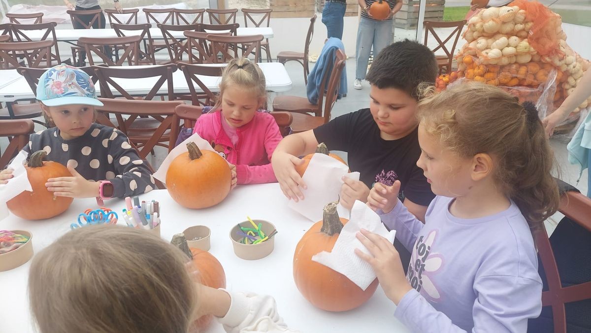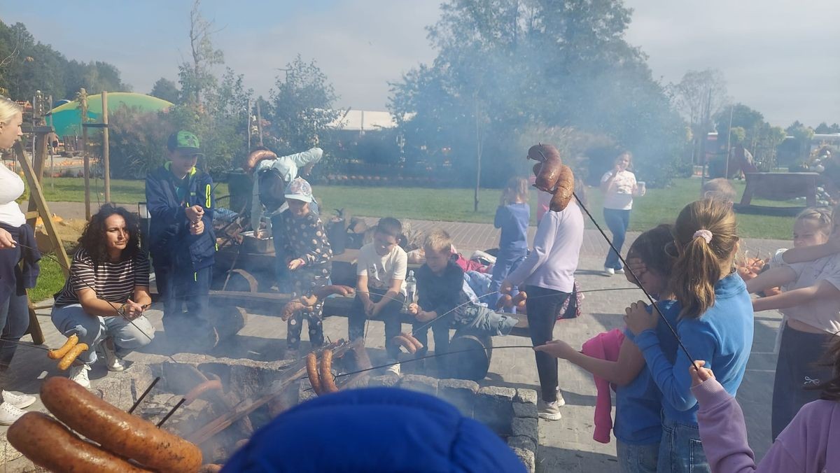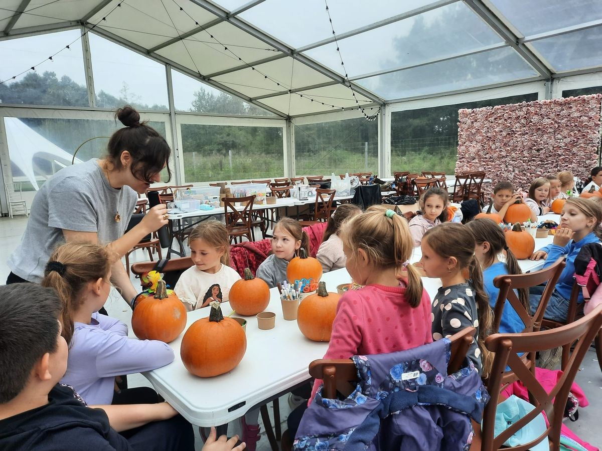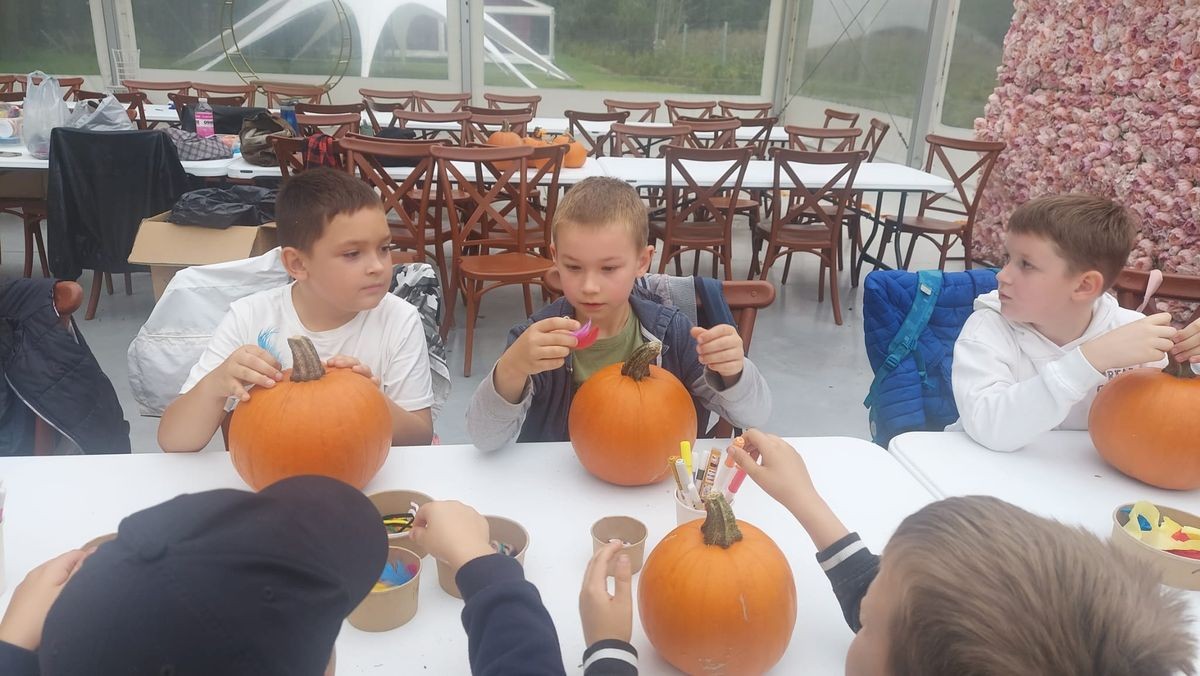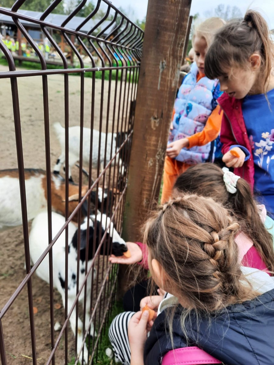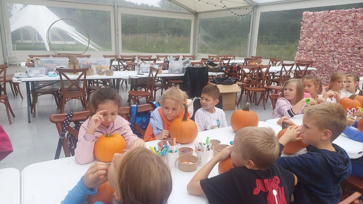 Miejsce zachwycało pięknem kolorów i form, wśród których dominowały dynie. Dzieci bardzo miło spędziły czas na świeżym powietrzu, gdzie spotkały wiele zwierząt, takich jak: wielbłądy, kangury, osły, kozy wietnamskie, króliki, alpaki. Po spacerze z przewodnikiem i karmieniu zwierząt odbyły się warsztaty zdobienia dyni. Dzieci uruchomiły swoją wyobraźnię i stworzyły rozmaite formy. Na pękatych kształtach pomarańczowych kul malowały, naklejały i rzeźbiły.nDzieci wróciły do domów ze swoimi dyniami w atmosferze radości. Kolejny raz miały okazję integrować się i bawić poza terenem szkoły.