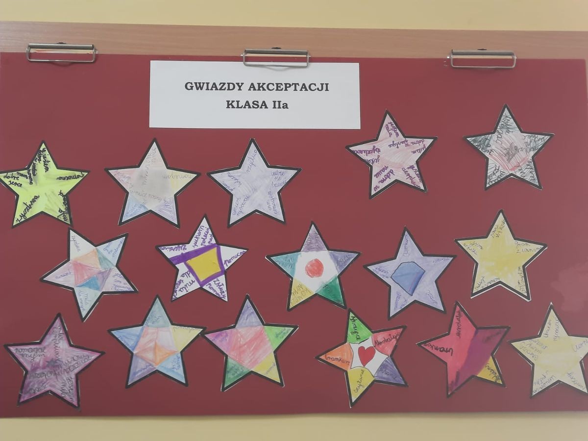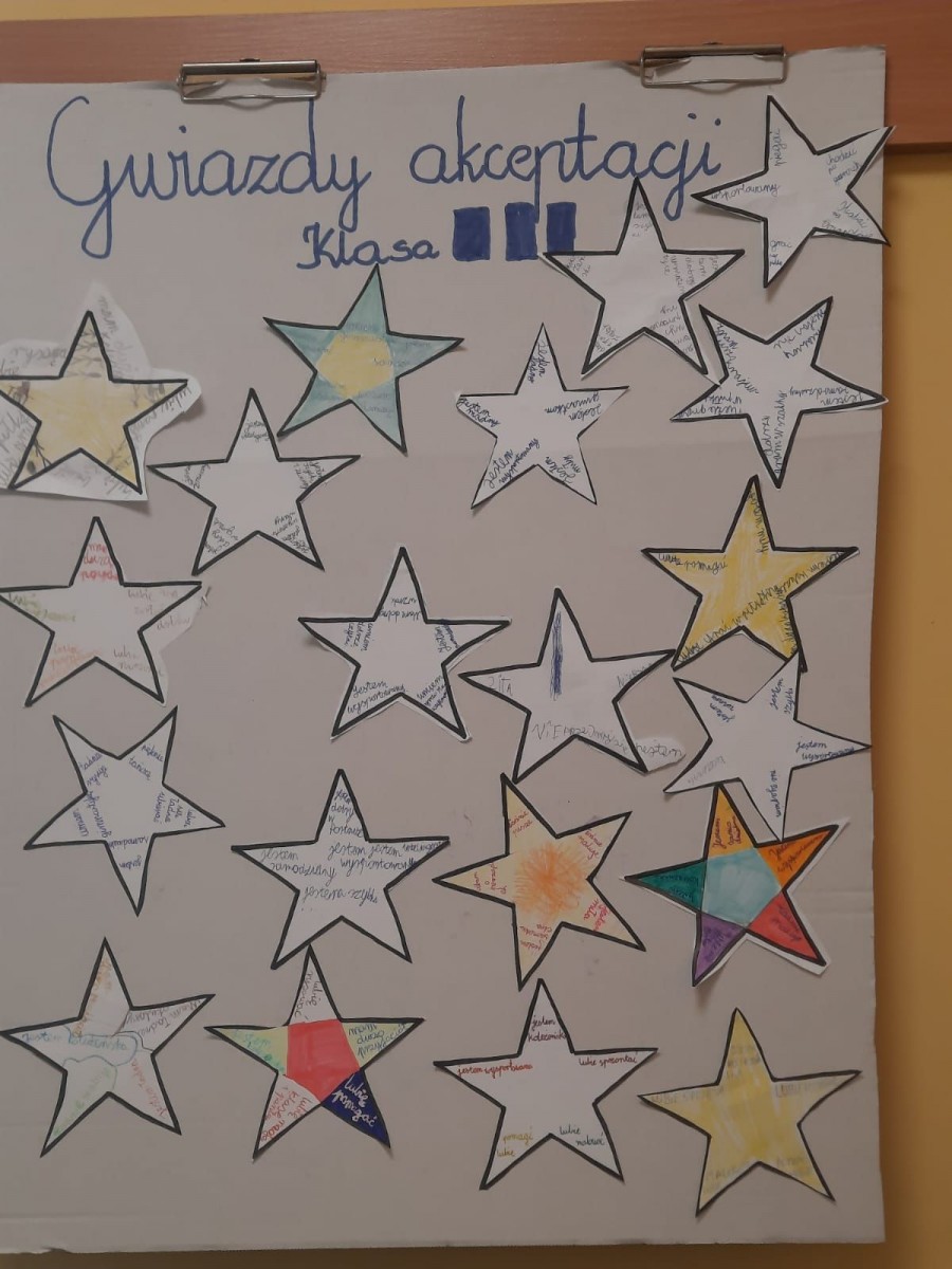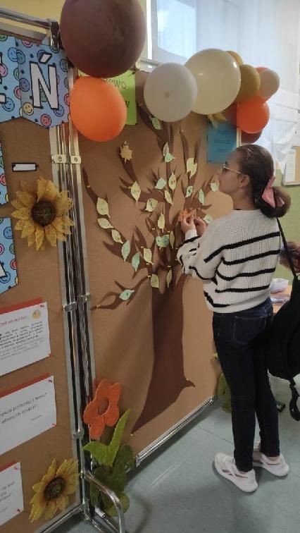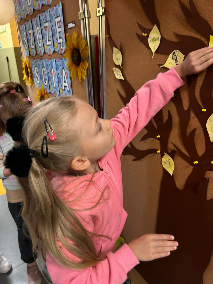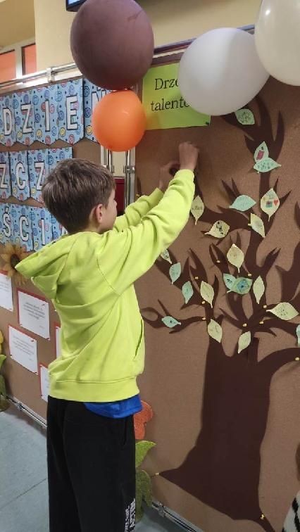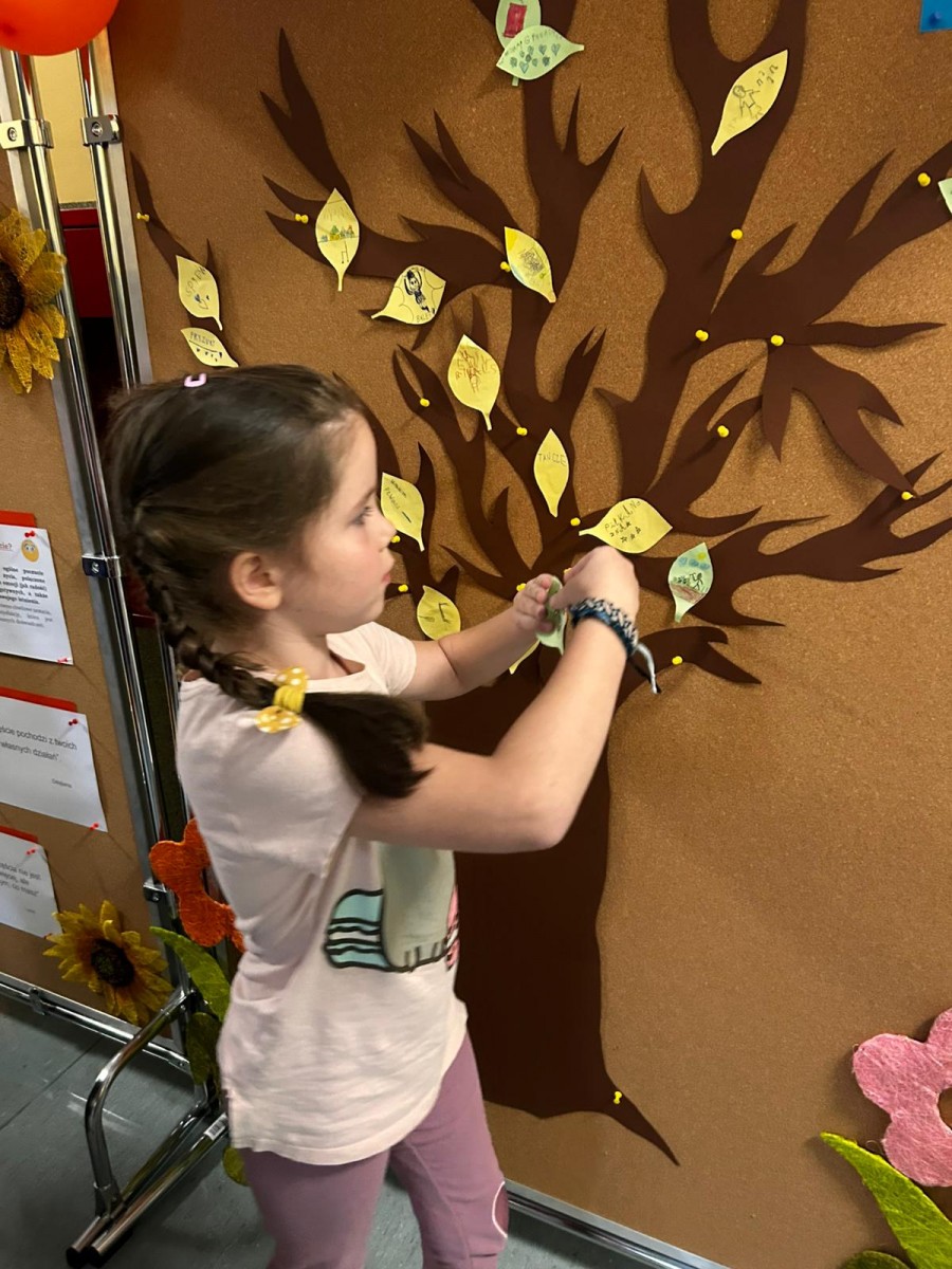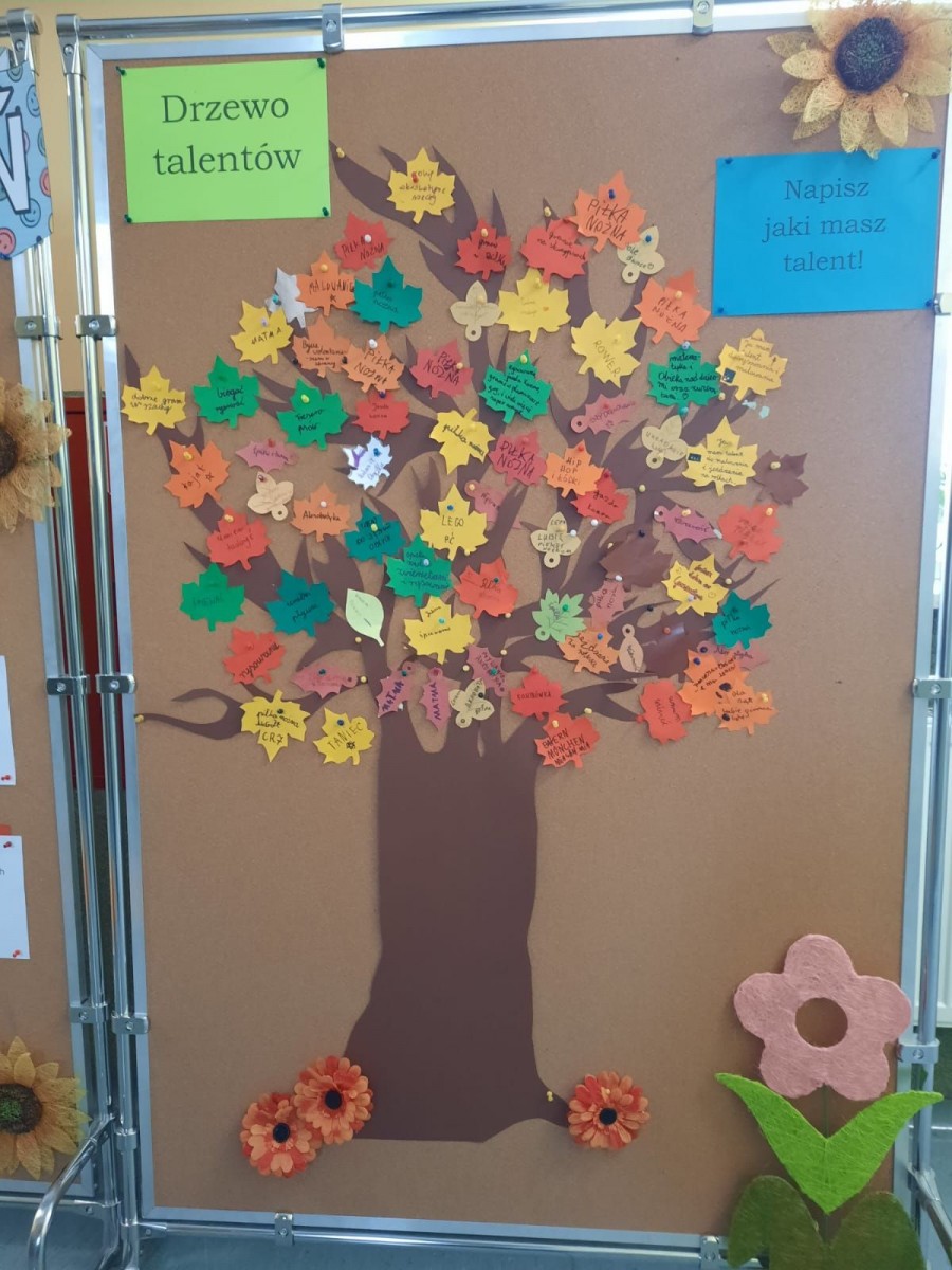 W ramach tygodnia szczęścia uczniowie tworzyli gwiazdy akceptacji, rysowali mapę swojego wymarzonego świata. Na korytarzu szkolnym wspólnie tworzyliśmy drzewo talentów, zapisując indywidualne zdolności.