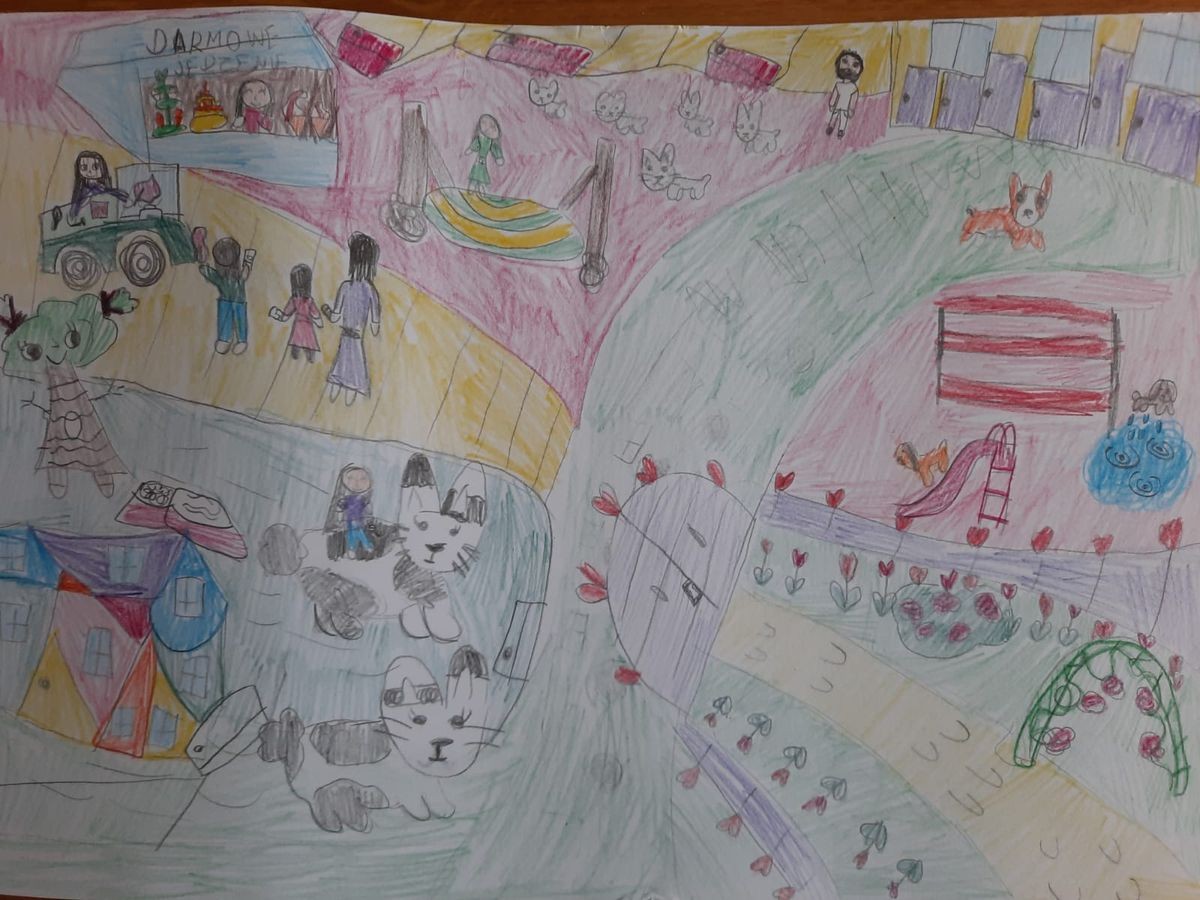 W ramach Tygodnia Szczęścia zaproponowano też uczniom klas I - VIII konkurs plastyczny pt. „Superbohater akceptacji”., w którym chętni mogli wykazać się swoją kreatywnością i zdolnościami plastycznymi.