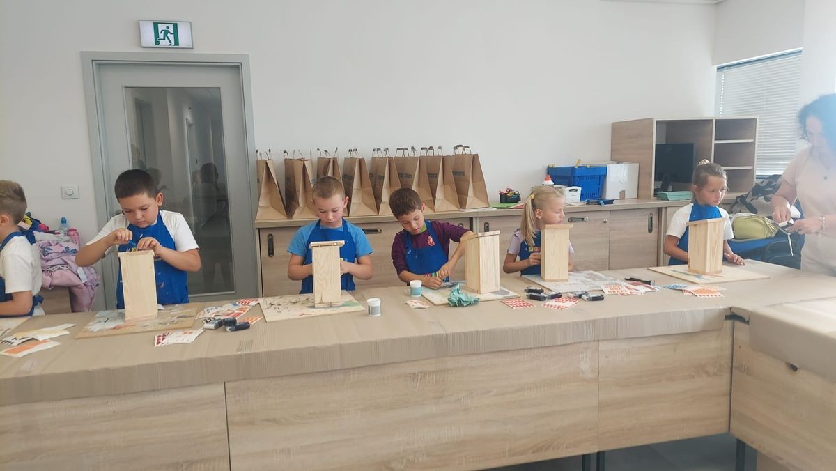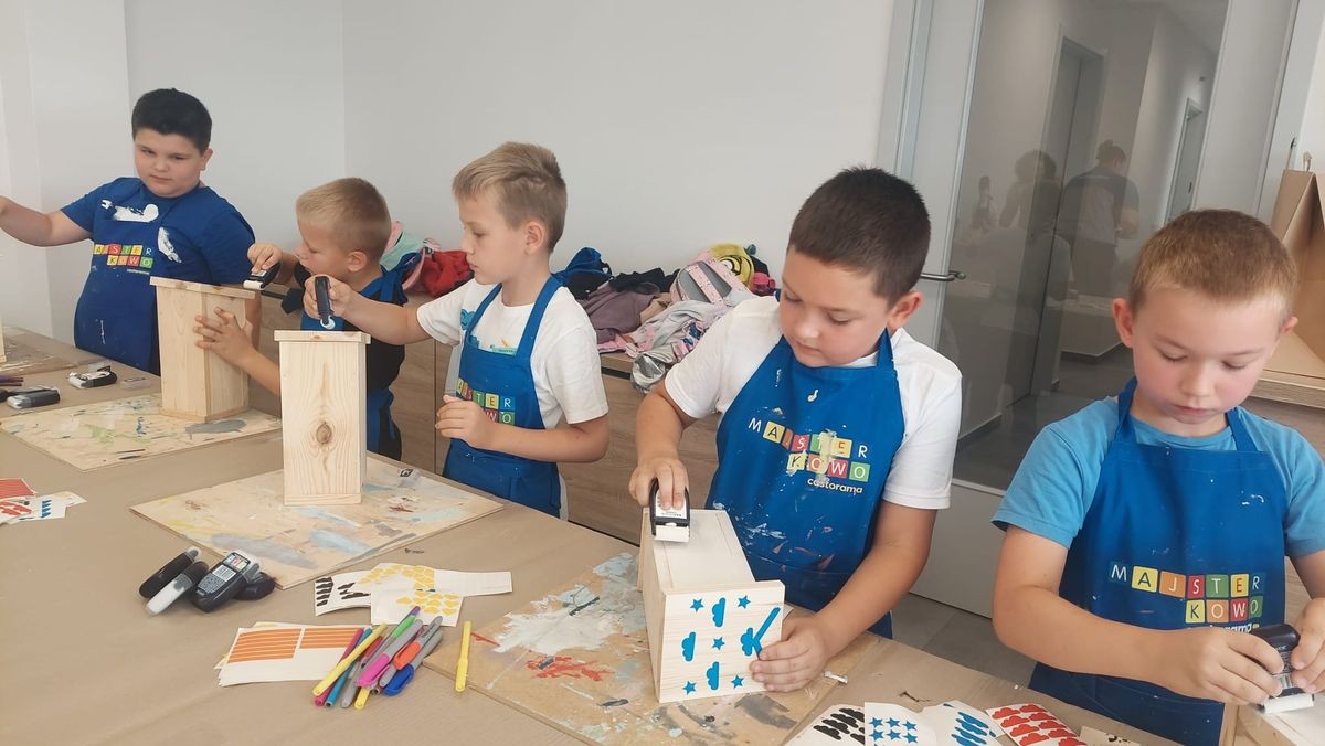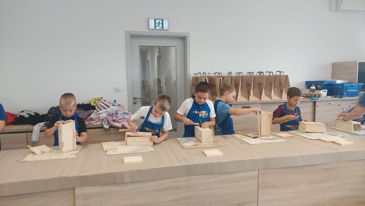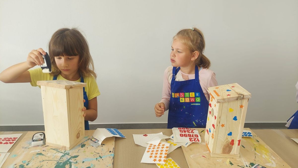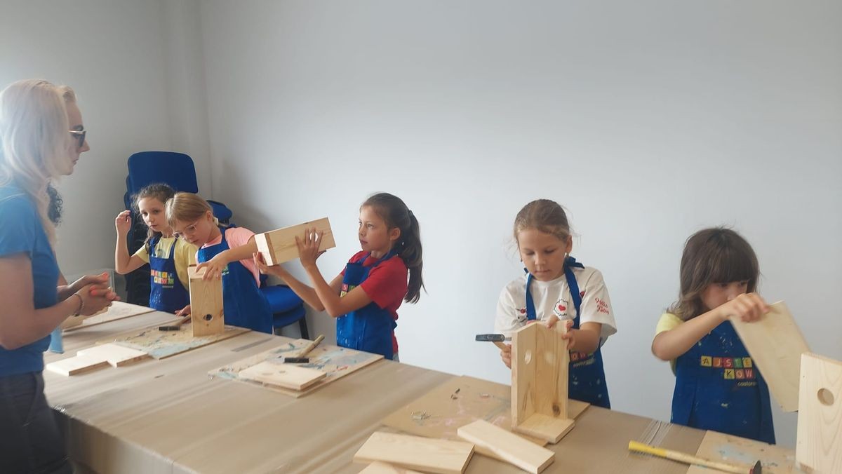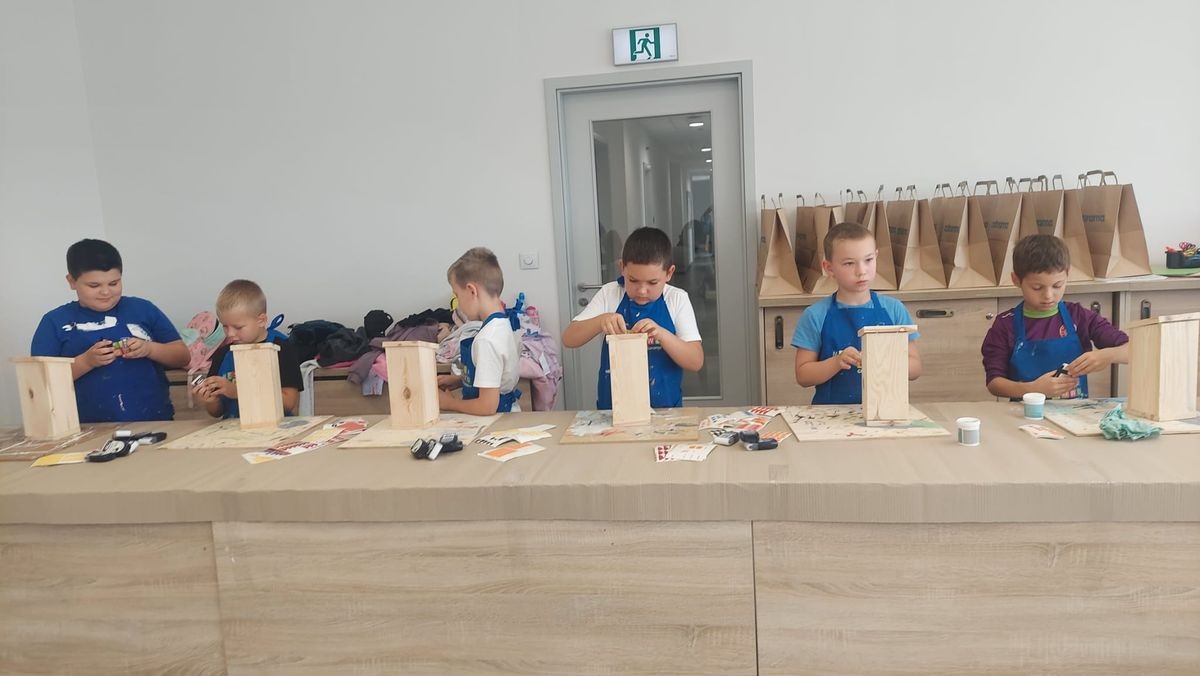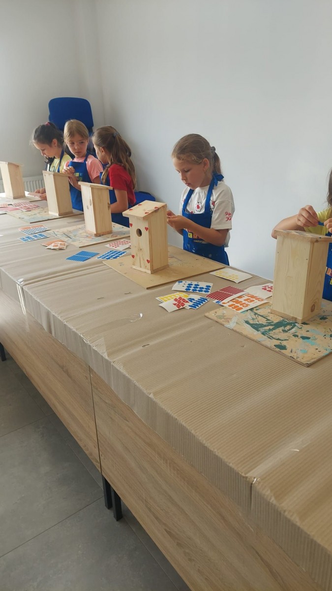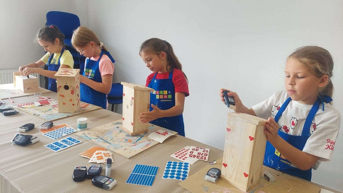 Zajęcia miały na celu rozwijanie kreatywności, zainteresowań majsterkowaniem, zdolności manualnych. Pobudzanie wyobraźni. Zwiększenie wiadomości z zakresu ekologii. Dzieci z ogromnym zaangażowaniem wykonały karmniki dla ptaków. Łączyły deseczki, wbijały gwoździe, a następnie ozdabiały, naklejały naklejki i malowały ścianki karmnika. Wszystkie prace wykonywały pod opieką p. E. Kwaśniewskiej i K. Majewskiej oraz pracowników Castoramy. Poznały główne działy sklepu Castorama.