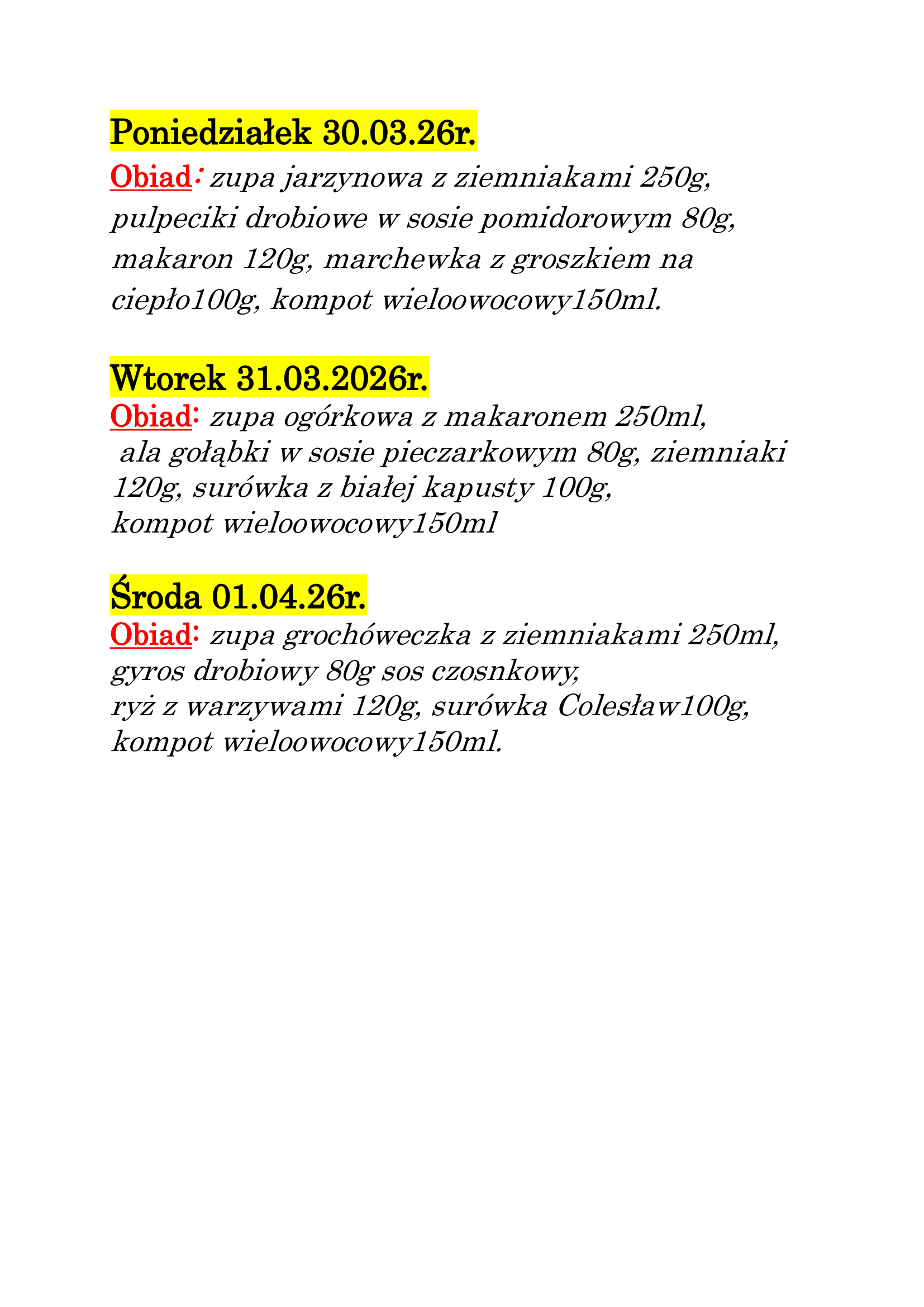 REZYGNACJĘ Z DALSZEGO WYŻYWIENIA DZIECKA LUB DEKLARACJĘ NA OBIADY NALEŻY ZGŁASZAĆ: NA TYDZIEŃ PRZED ROZPOCZĘCIEM NASTĘPNEGO MIESIĄCA.